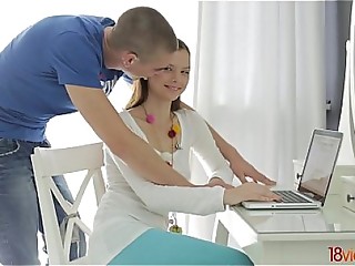DevilsVid.com - A big tits teen accepts a babysitter job.Her boss caresses her then sucks her