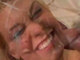 Superb long haired blonde cougar in stockings Bijenny gets pierced muff fucked and glasses cumshoted