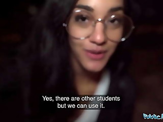 Public Agent She keeps her glasses on as she gets fucked on a washing machine in a basement laundry