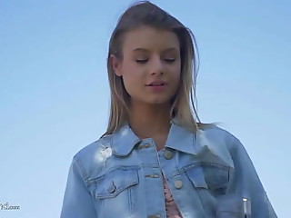 Tiny titted teen Adriana masturbating in the garden
